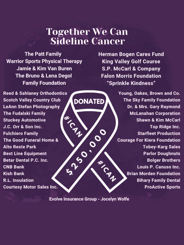Starting in 2022, Sideline Cancer rolled out a new initiative, the Patient Assistance Program which allows school communities to come together in support of a patient battling cancer. Since it’s inception in 2022, Sideline Cancer’s Patient Assistance Program has donated over $250,000 to support 75+ patients in the communities of Central, PA and beyond!